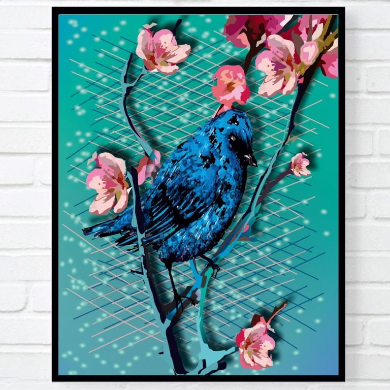 Plakat z autorską grafiką: Błękitny ptak