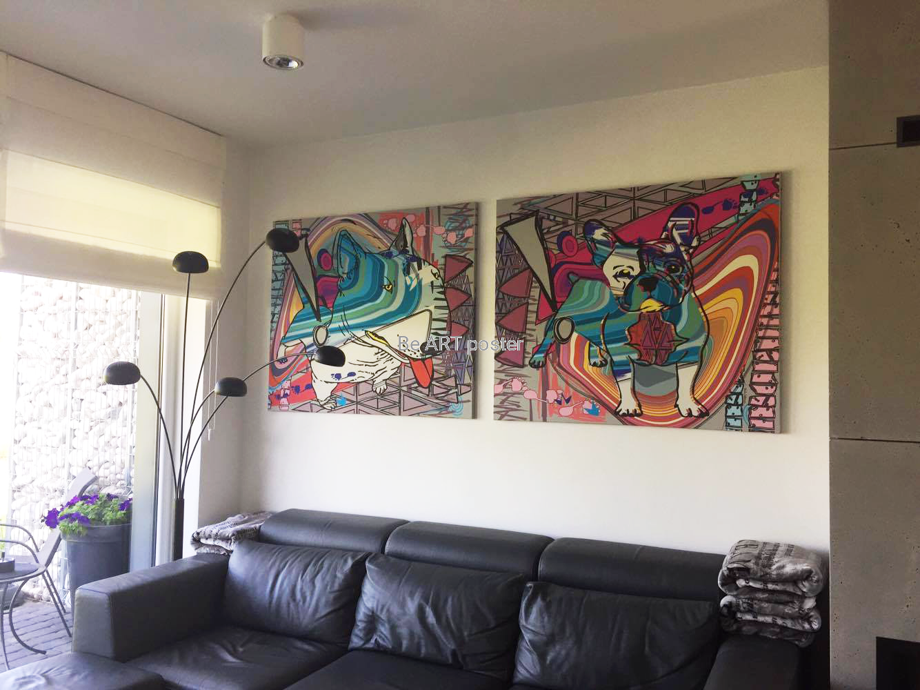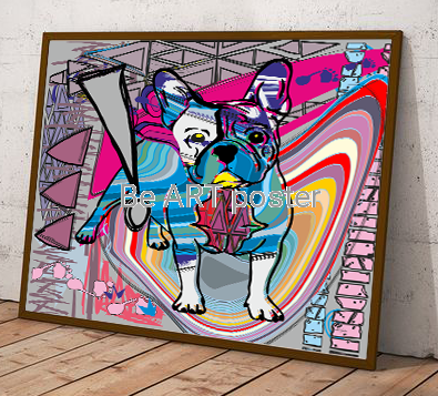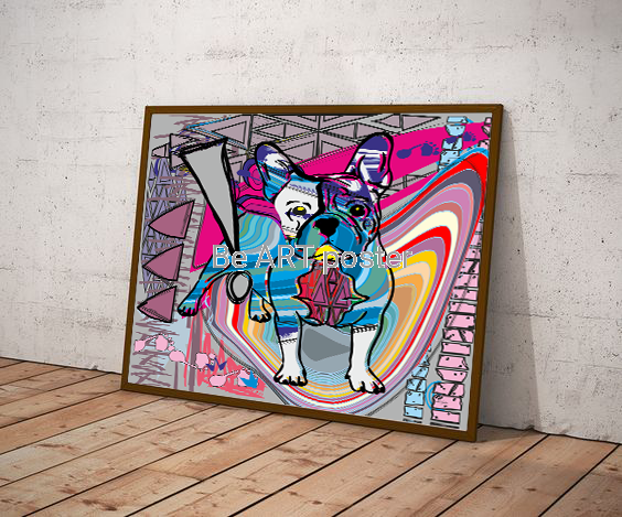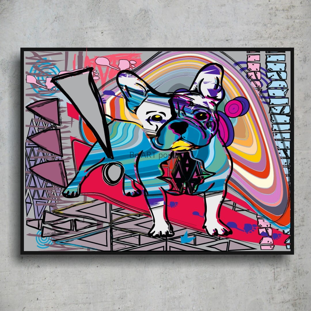 Plakat z autorską grafiką: Buldog francuski abstrakcja