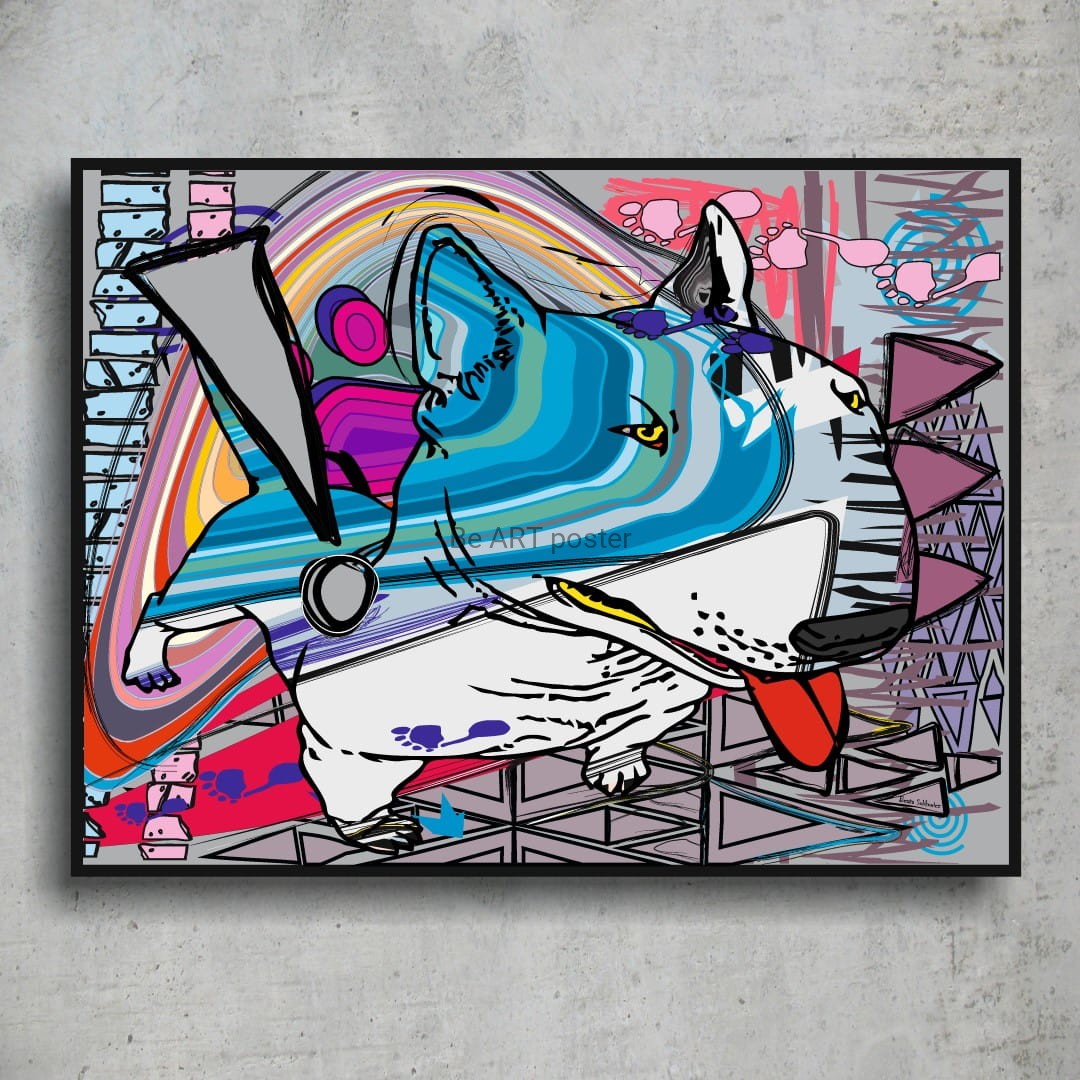 Plakat z autorską grafiką: Bulterier abstrakcja