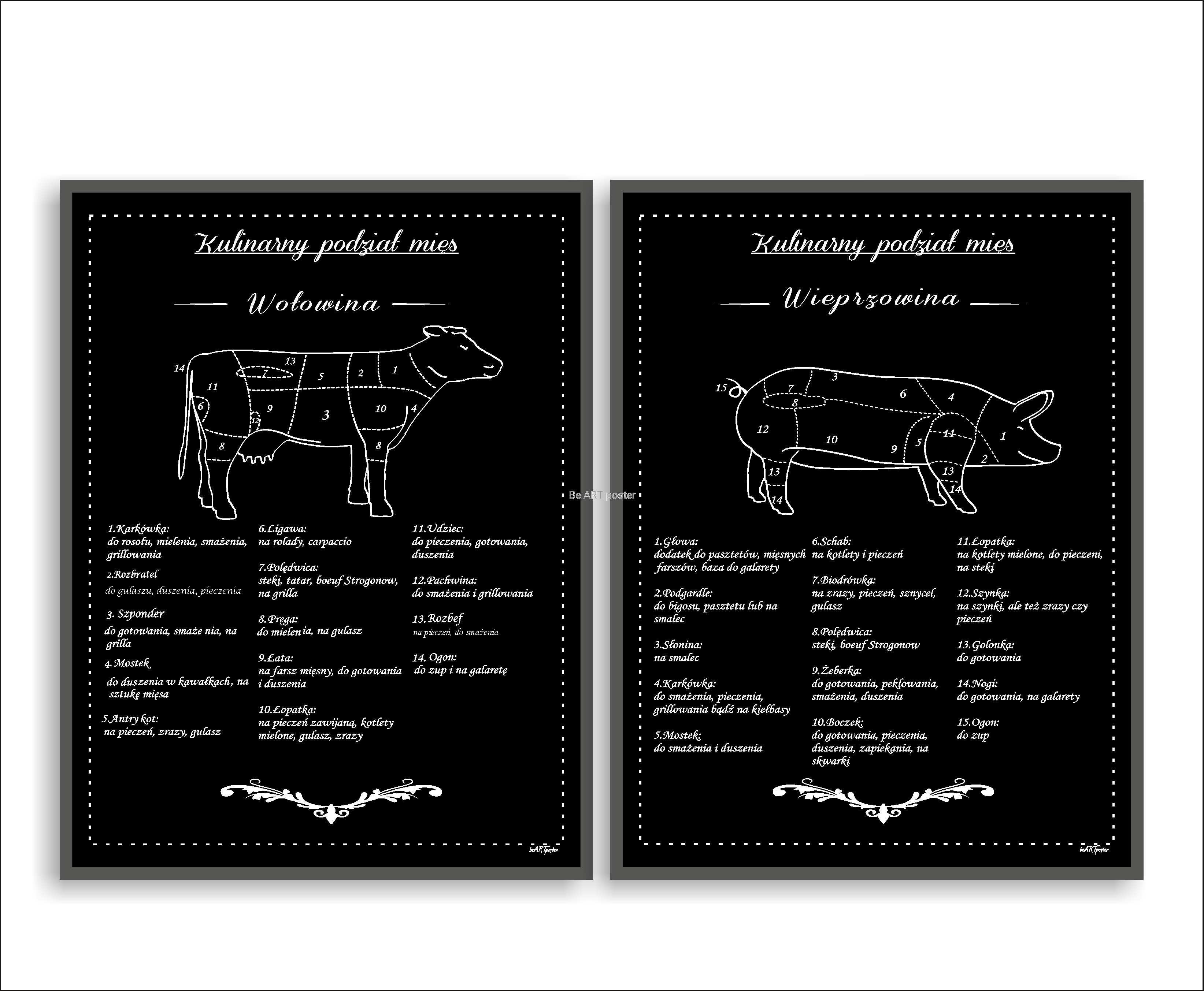 Plakat z autorską grafiką: Dyptyk - podział mięsa - wołowina/wieprzowina (2 szt)