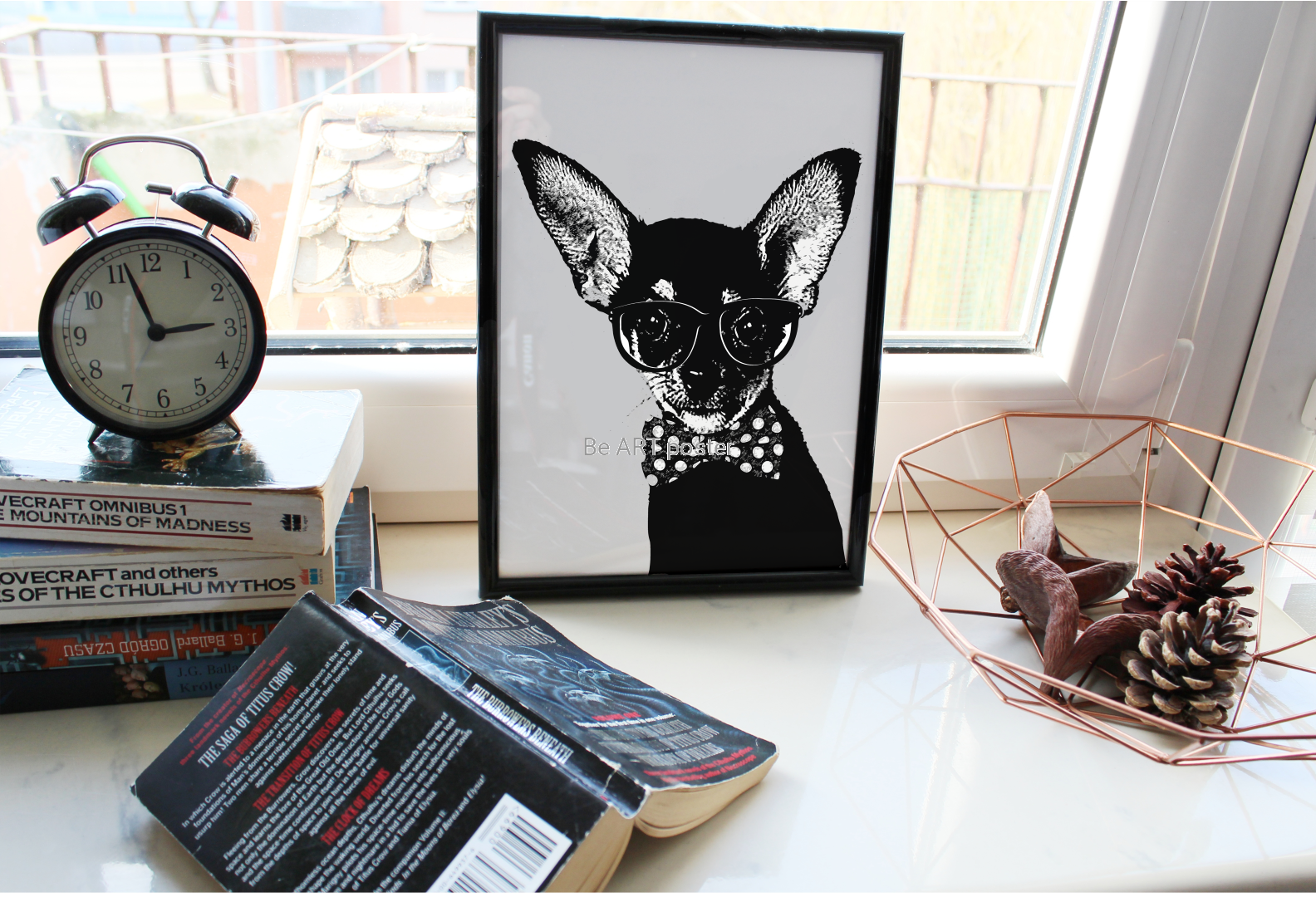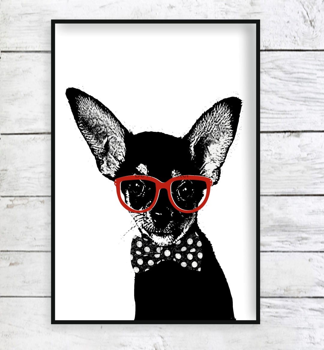 Plakat z autorską grafiką: Hipster - pies chiuaua Leon