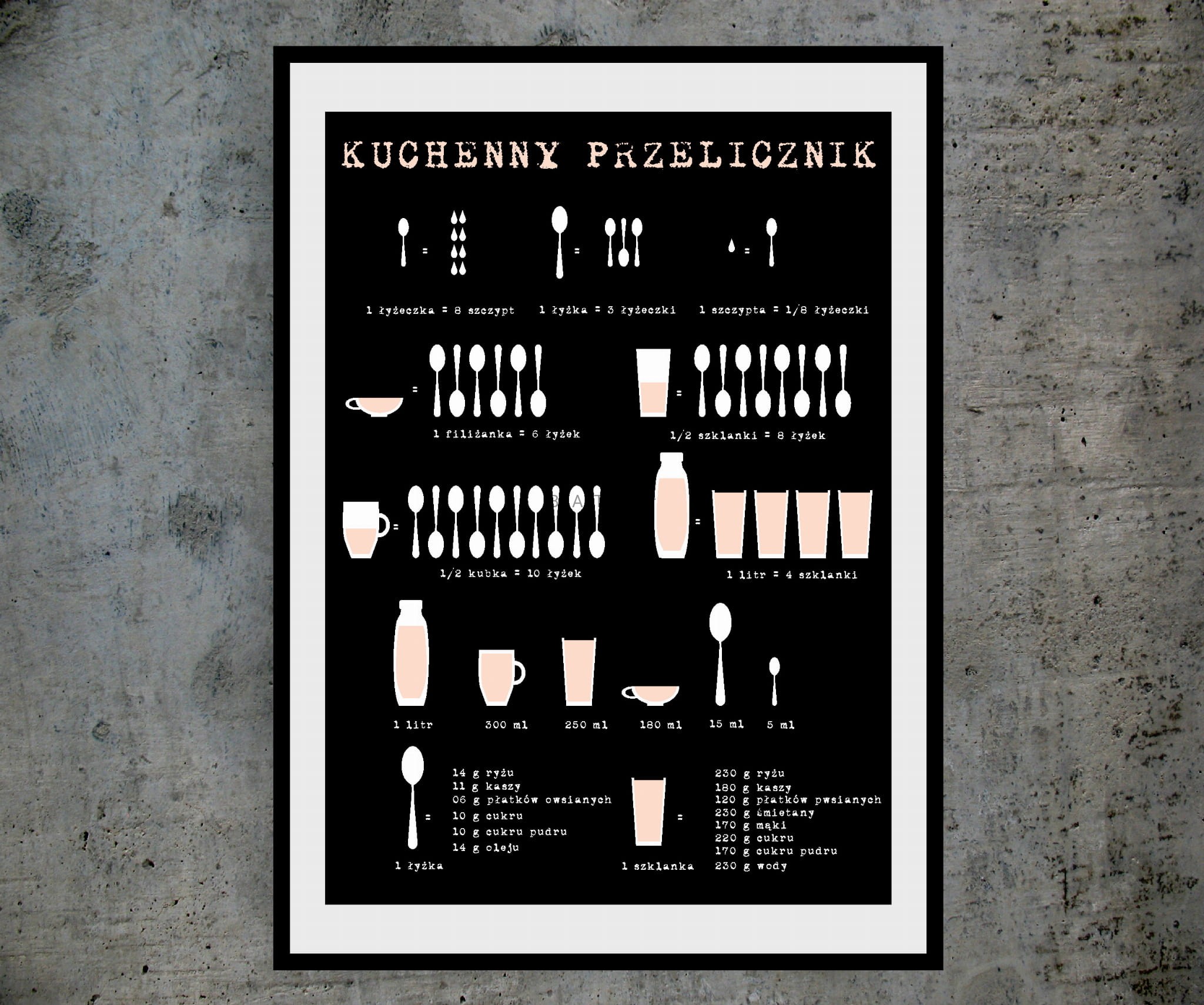 Plakat z autorską grafiką: Kuchenny przelicznik