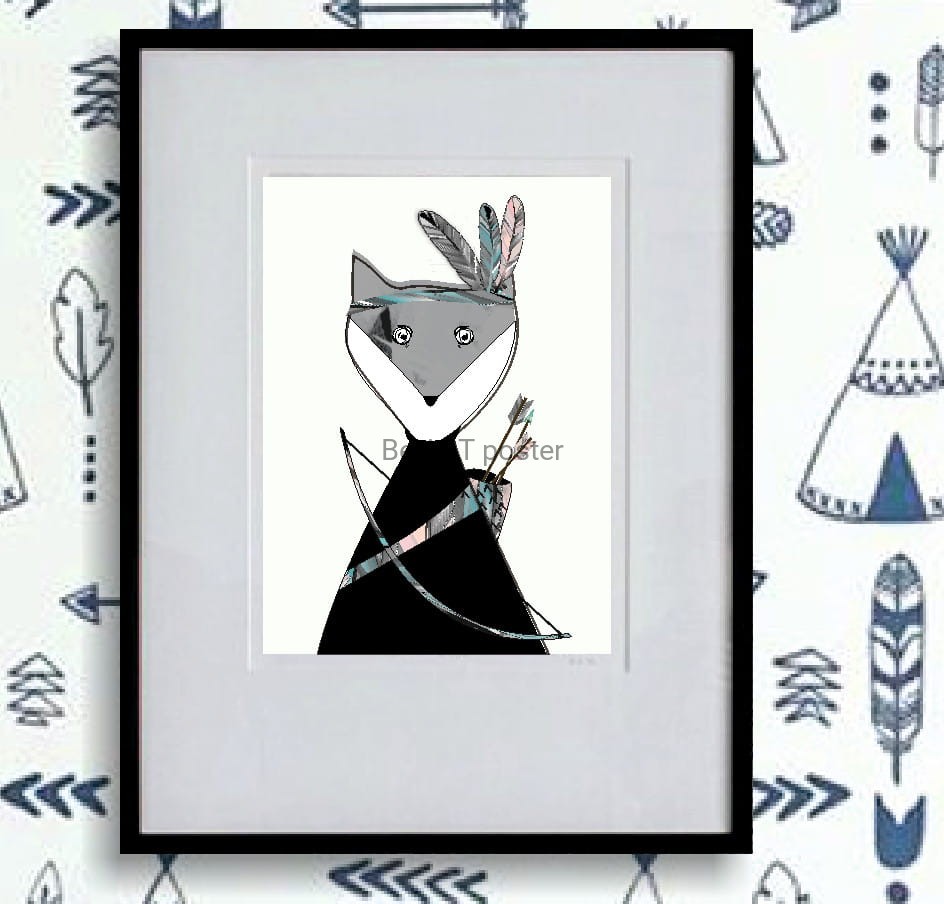 Plakat z autorską grafiką: Lisek z lasu