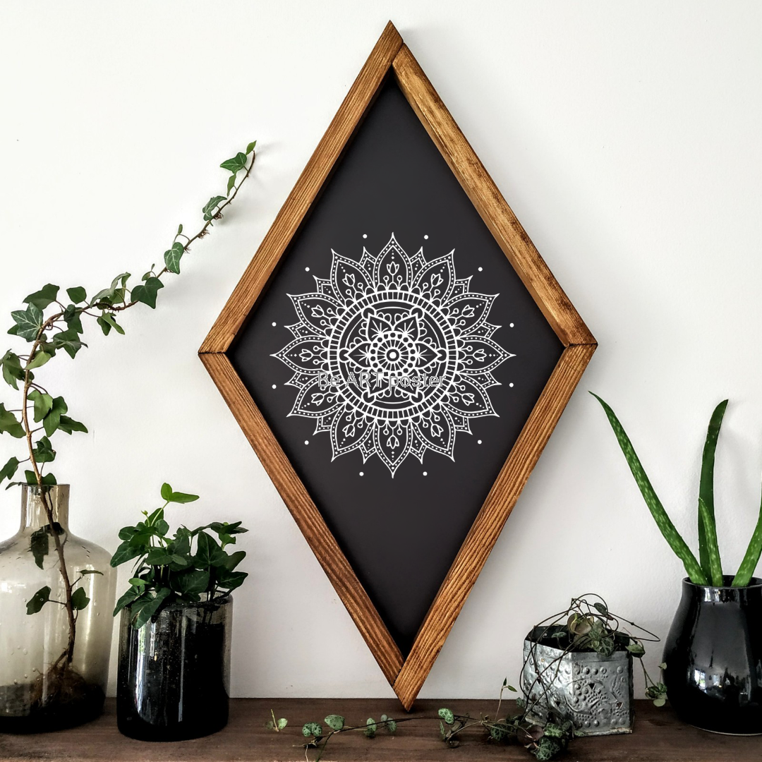 Drewniana tabliczka: Romb MANDALA czarny