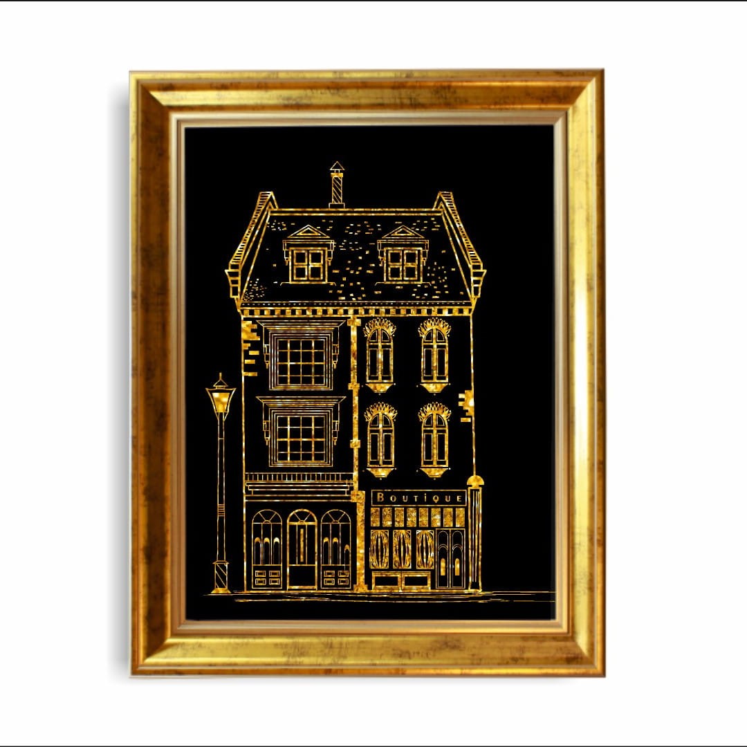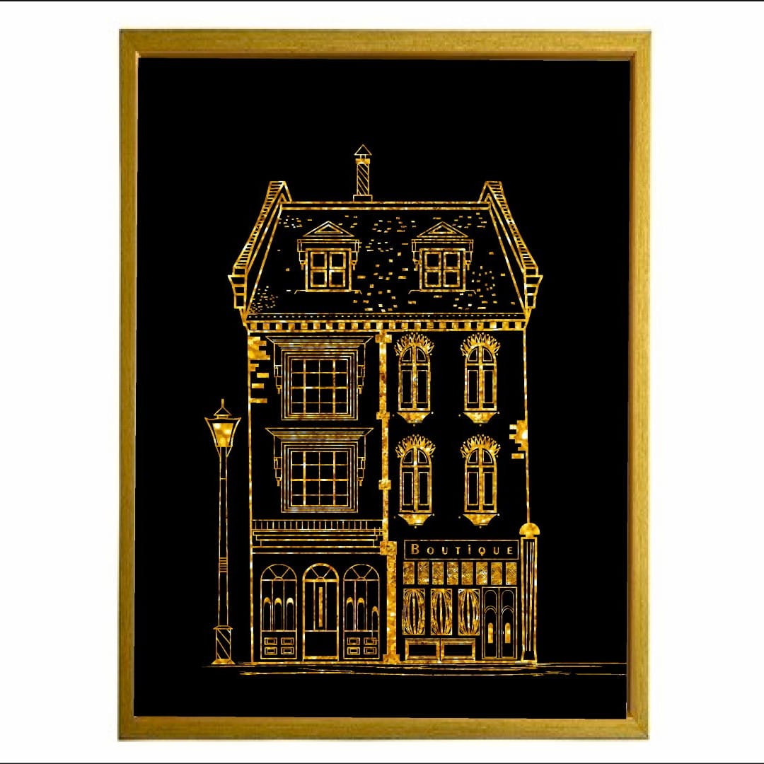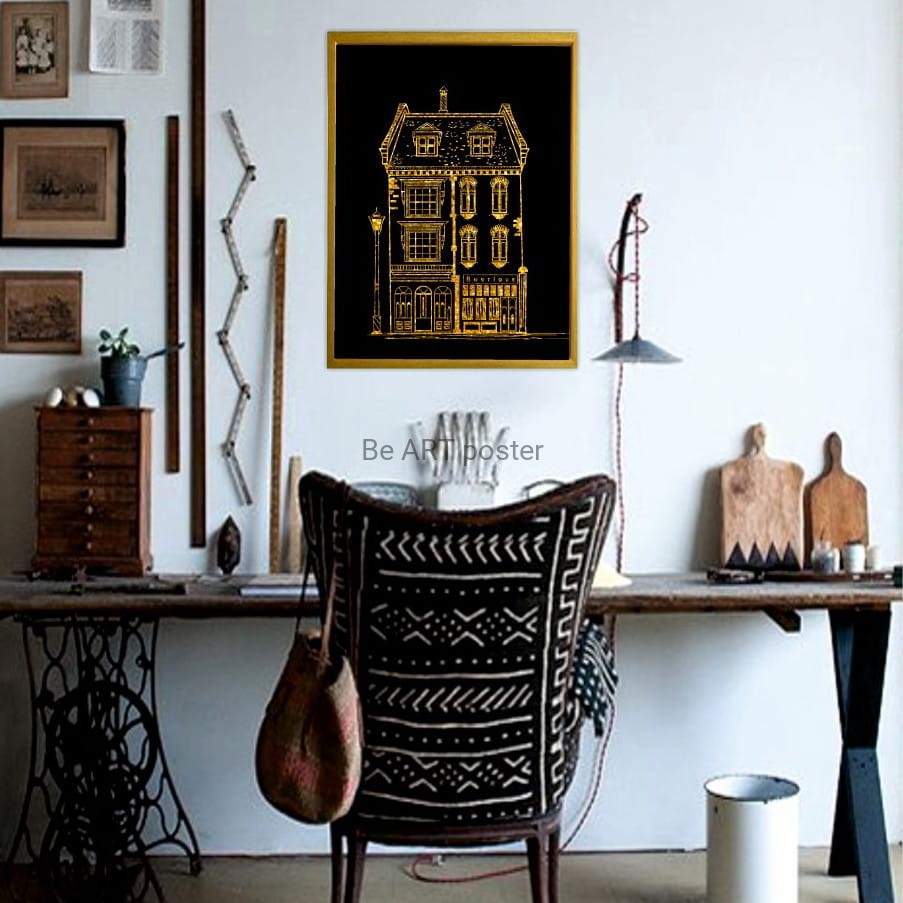 Plakat z autorską grafiką: Złota kamieniczka nr 1