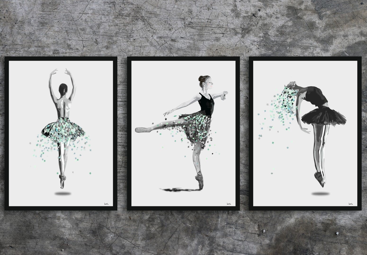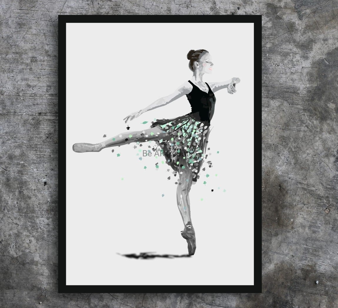 Plakat z autorską grafiką: baletnica mięta nr 1