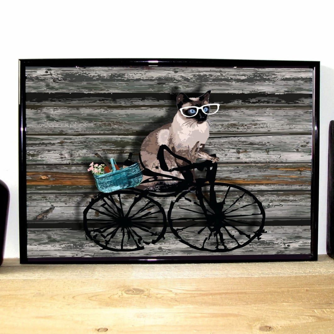 Plakat z autorską grafiką: hipster - kot syjam nr 1