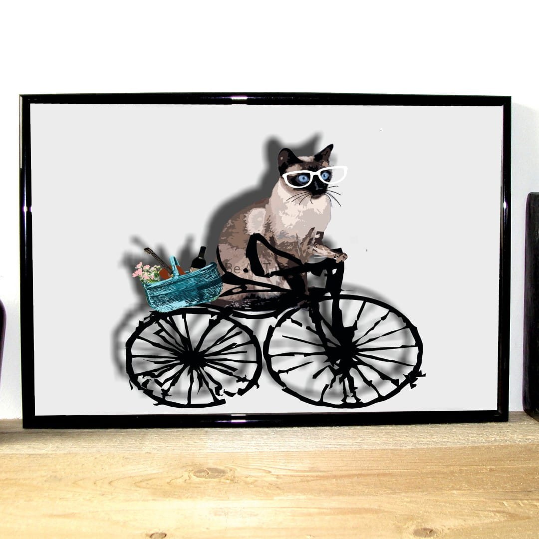 Plakat z autorską grafiką: hipster - kot syjam nr 2