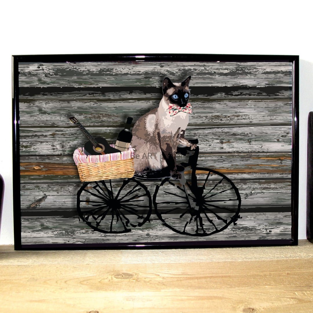 Plakat z autorską grafiką: hipster - kot syjam nr 3