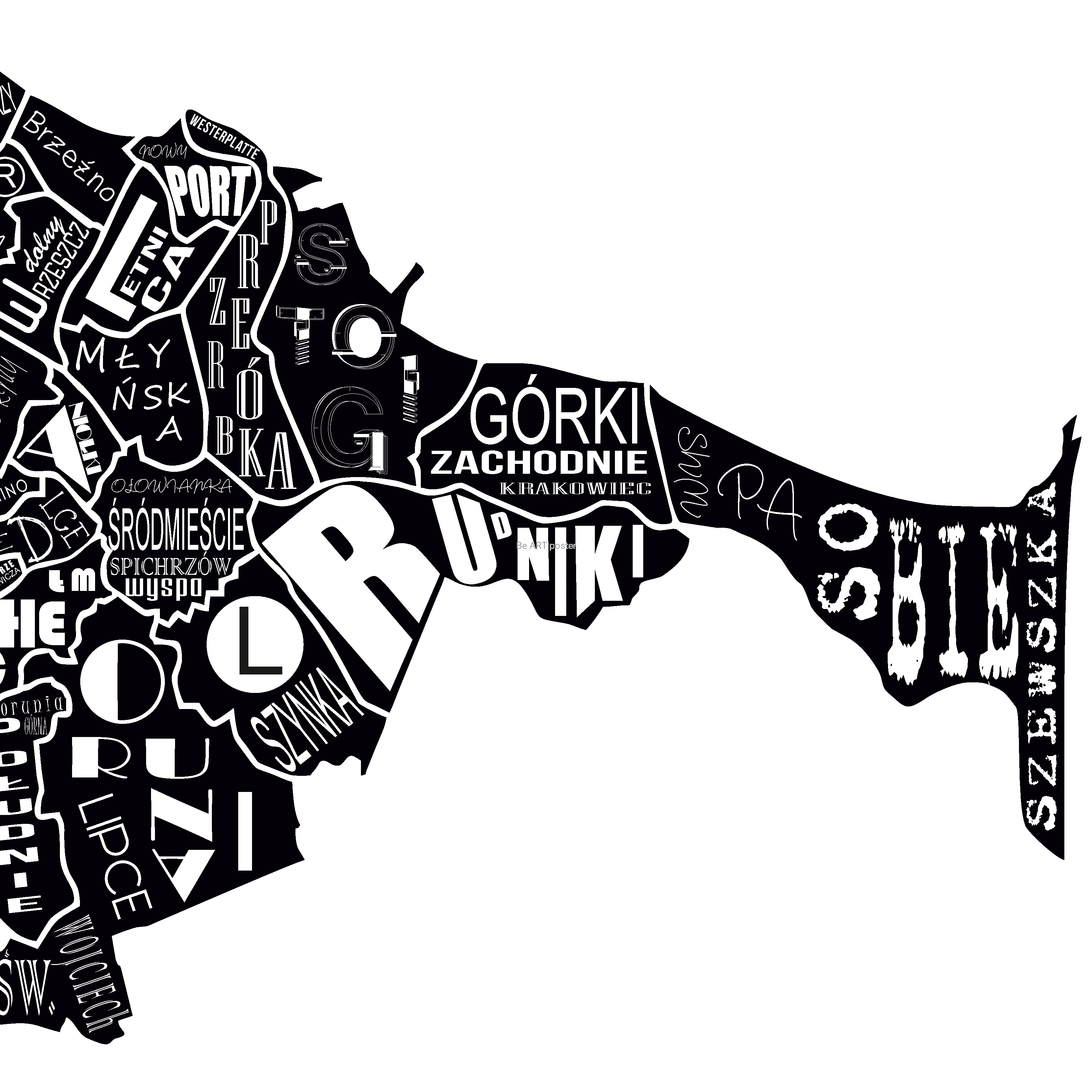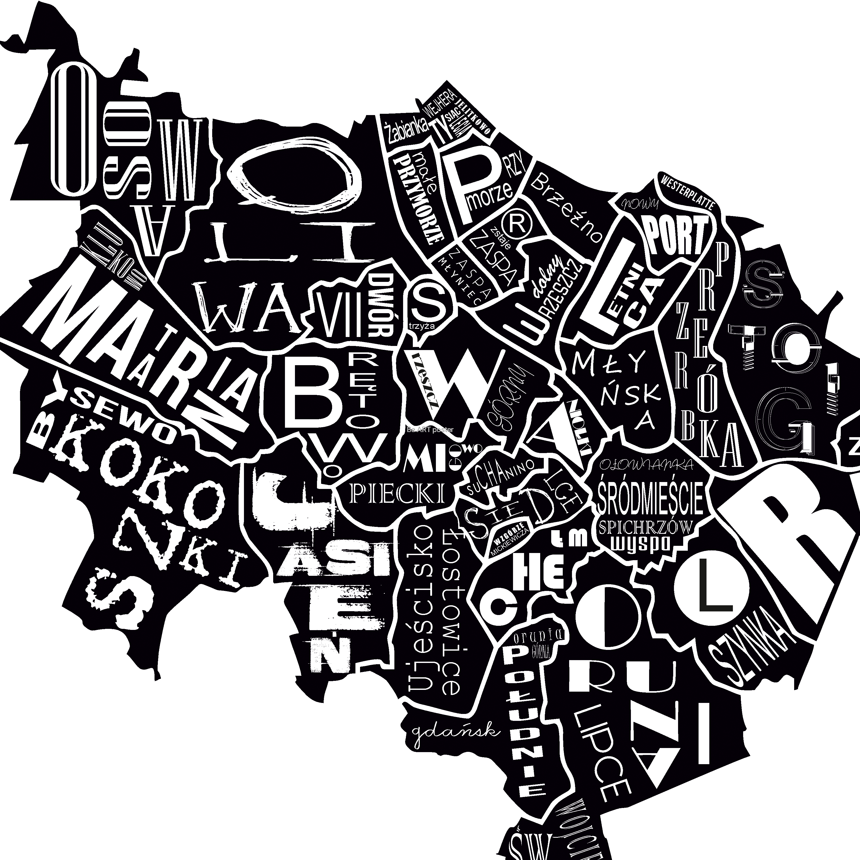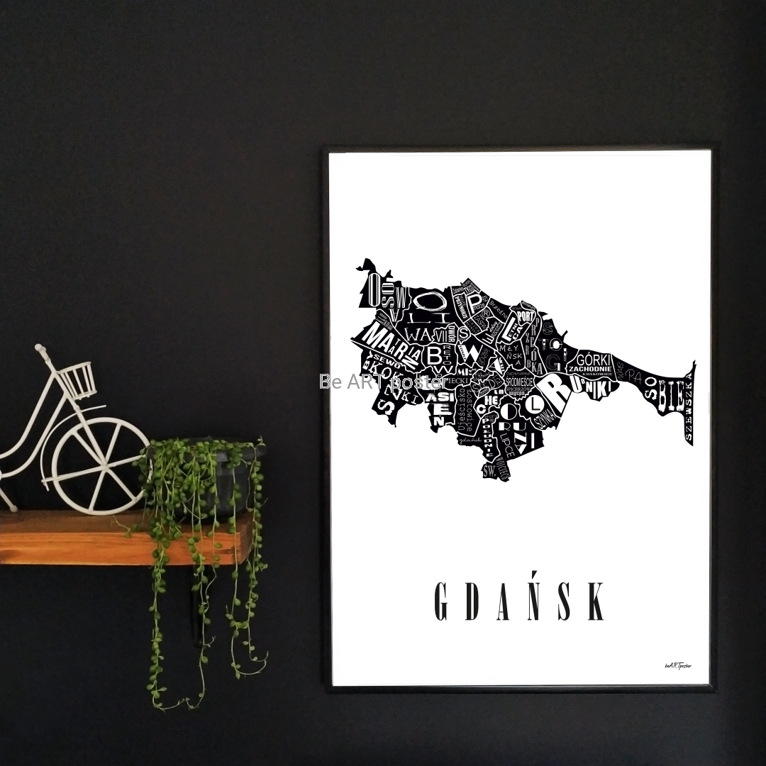 Plakat z autorską grafiką: mapa GDAŃSK
