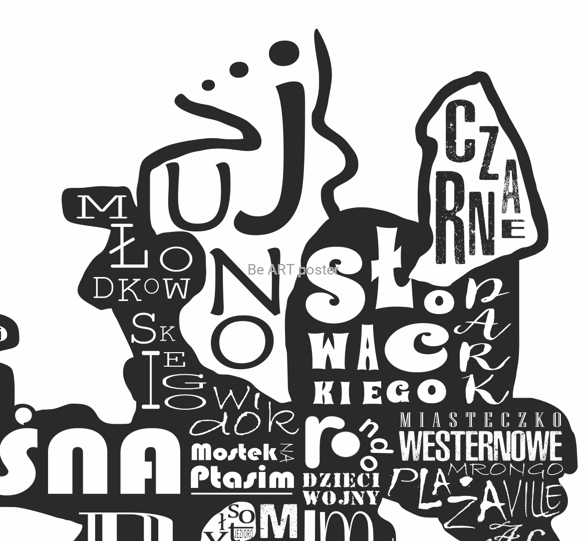 Plakat z autorską grafiką: mapa Warszawa