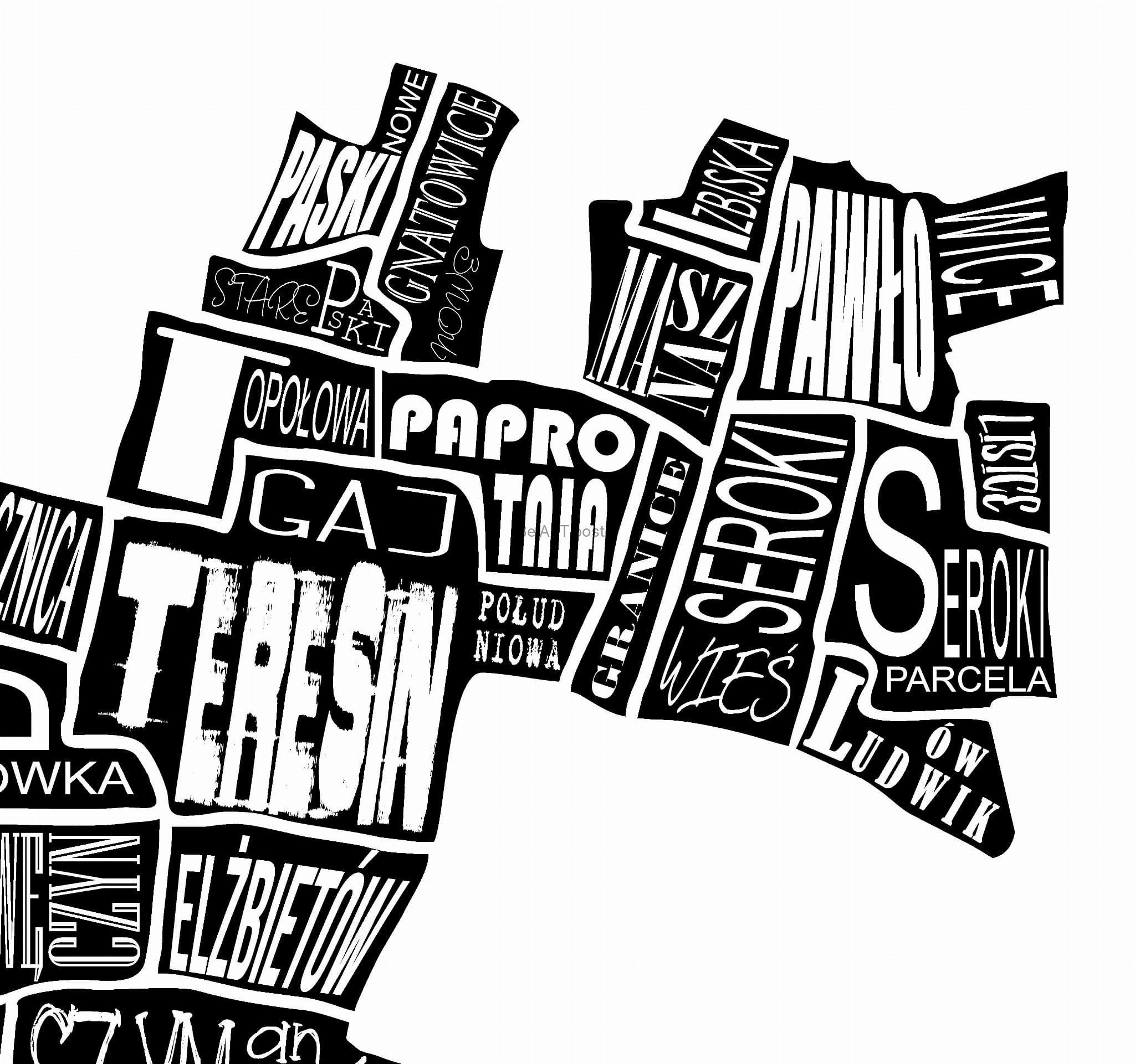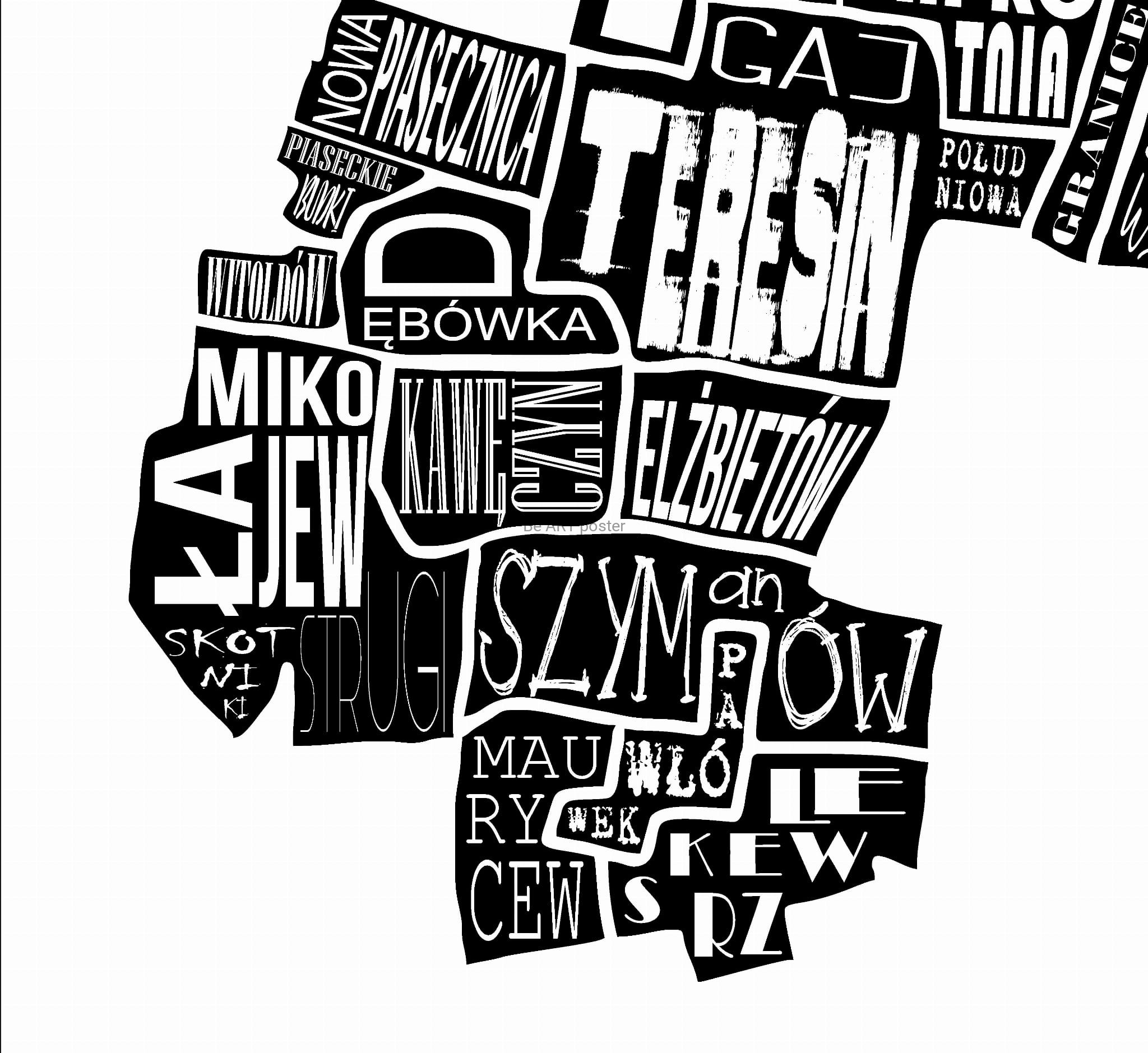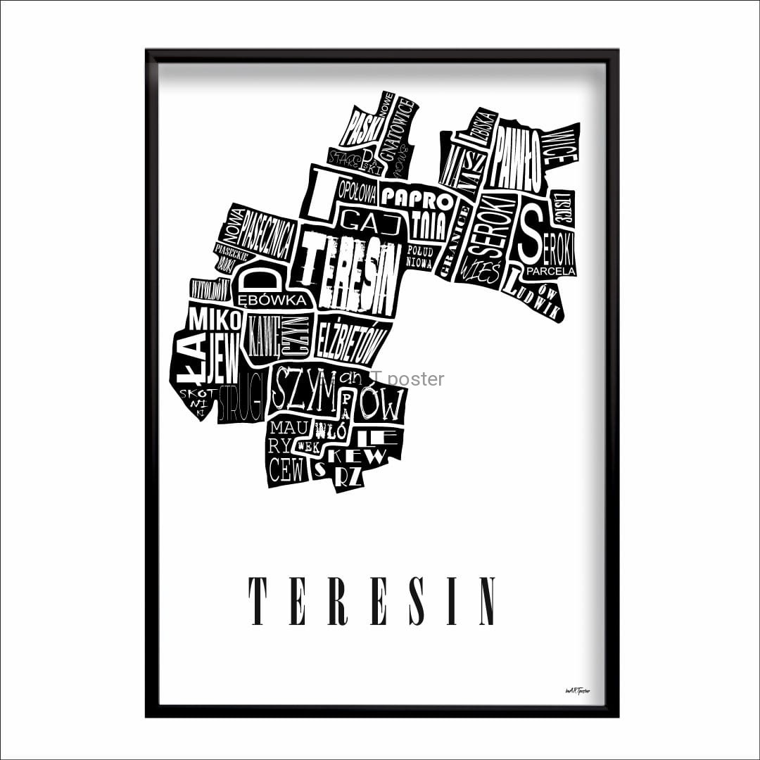 Plakat z autorską grafiką: mapa Teresin