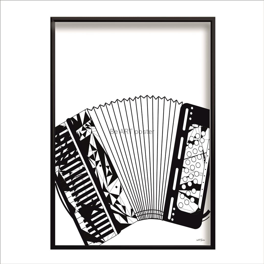Plakat z autorską grafiką: music - akordeon