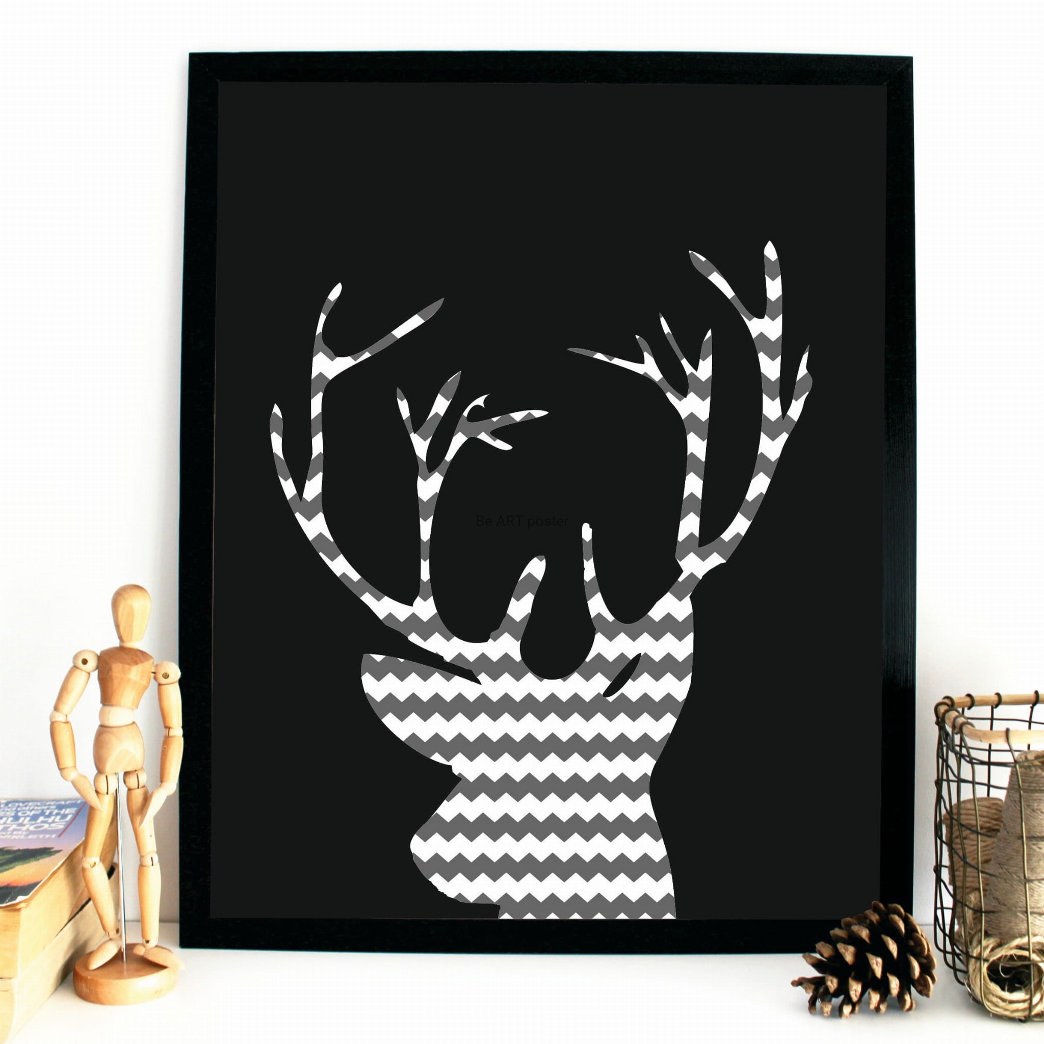 Plakat z autorską grafiką: skandi - jeleń nr 2